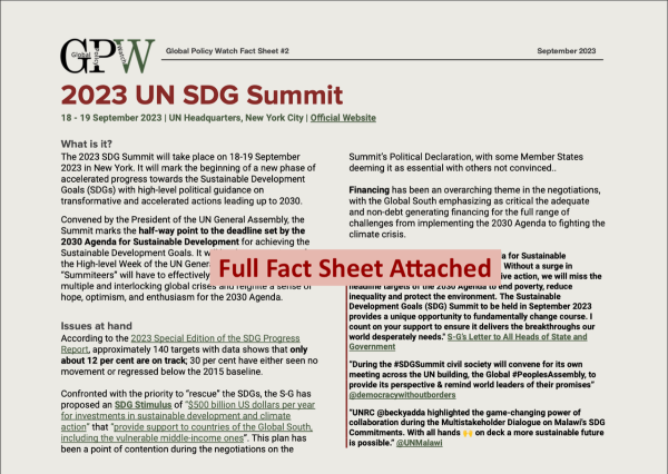 Global Policy Watch’s factsheet highlights the significance, programme, events and Political Declaration of the Summit and includes relevant links and documents for further exploration.