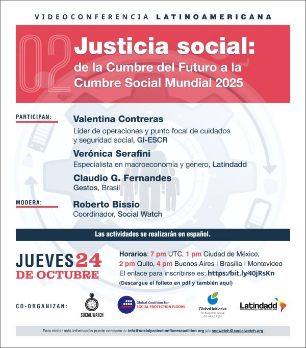 La grabación de la videoconferencia latinoamericana “Justicia social: de la Cumbre del Futuro a la Cumbre Social Mundial 2025” está en línea.