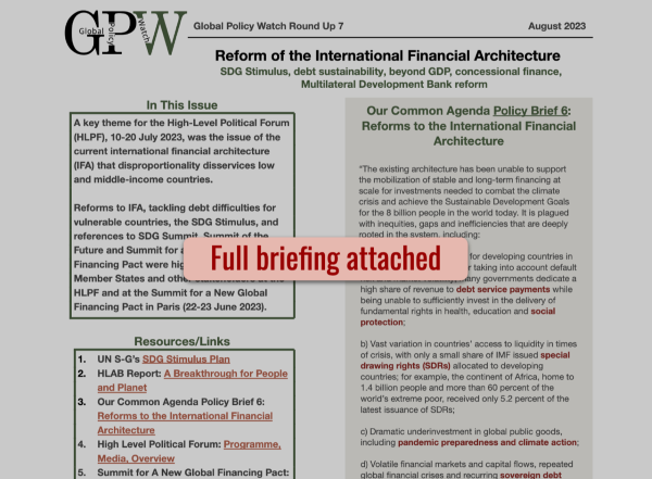 A key theme for the High-Level Political Forum (HLPF), 10-20 July 2023, was the issue of the current international financial architecture (IFA) that disproportionality disservices low and middle-income countries.